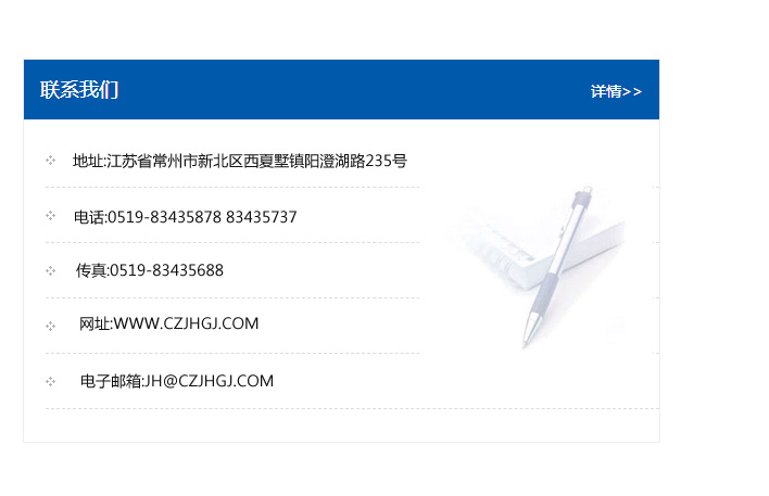 傳真:0519-83435688    郵編:213135    網(wǎng)址:WWW.czjhgj_com.0592hyx.com    電子郵箱:JH@czjhgj_com.0592hyx.com